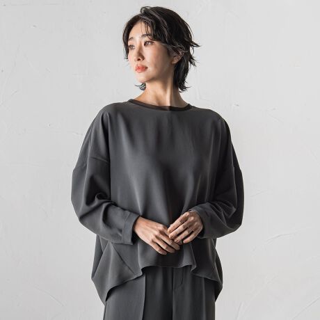 カットソーのように伸びて、着心地はらくなのに、見た目はきちんとブラウスライク。