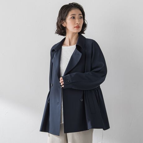 とろみのあるシャンブレー素材を使用したショートトレンチ。