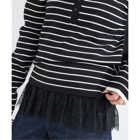上品さをプラスしてくれる裾にレース素材をドッキングしたカットソー。