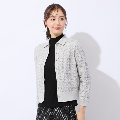 手の込んだ立体感のある編地。かわいらしい雰囲気のニットカーディガン。