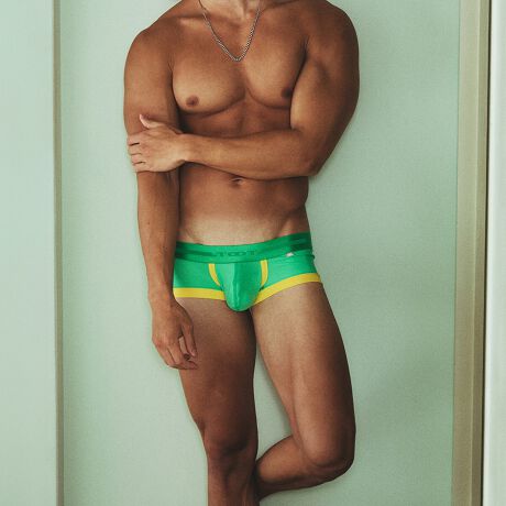 「エンブレム ナイロン スーパーnano」は、スーパーnanoのすっきりとしたシルエットにマッチするシンプルなデザインで、後ろ身ごろにエンブレムをワンポイントとしてプリントしました。TOOT定番の全方向に伸縮性の優れたストレッチナイロン生地を使用し、柔らかなツヤのあるウエストゴムが肌に優しく、抜群の穿き心地は抜群。