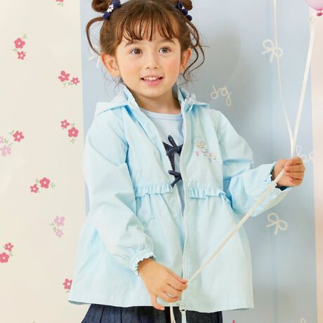 裏地には、mimiちゃんと森の動物たちが、ピクニックを楽しむ様子の総柄プリントを使用、フード裏からのぞく柄が、後ろ姿のさりげないアクセントとなったり、着脱の時、楽しい気分にさせてくれる仕様となっています。