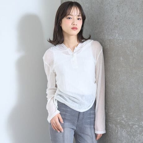 マルイウェブチャネル   /   トップス   /   Tシャツ・カットソー   /   【LTXC】インナーつきシアーヘンリーフードニットカットソー