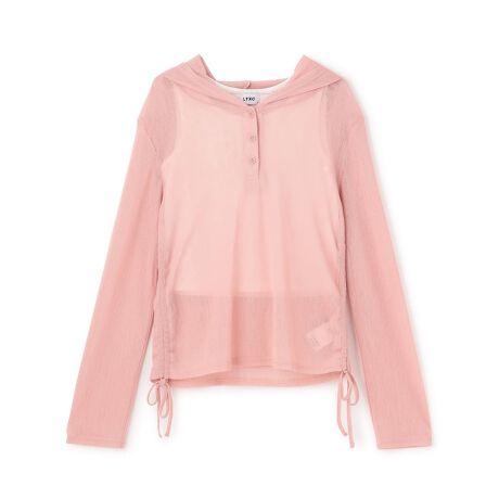 【LTXC】インナーつきシアーヘンリーフードニットカットソー