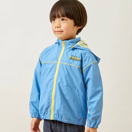 裏地には、左胸の刺しゅうと同じ、電車の総柄プリントを使用、フード裏からのぞく柄が、後ろ姿のさりげないアクセントとなったり、着脱の時、楽しい気分にさせてくれる仕様となっています。