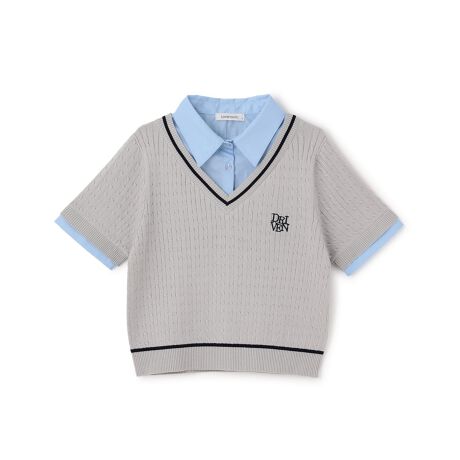 一枚でコーデが完成するレイヤード風の半袖ニットシャツです。