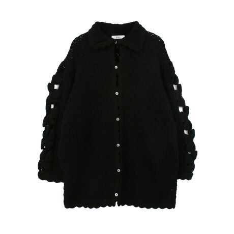 3型の編み柄を組み合わせた透かし柄ビッグカーデ。