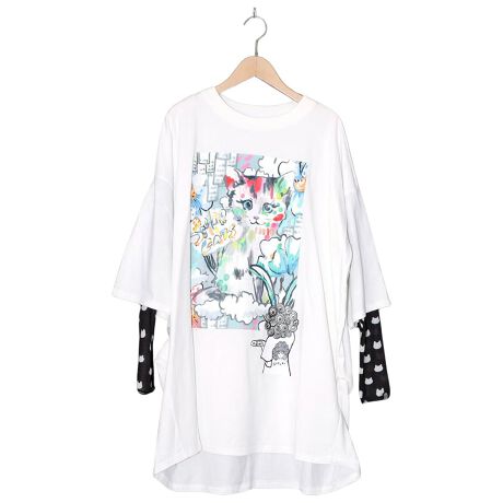その周りをカラフルなお花やロゴで彩った、アート感たっぷりのチュニック。