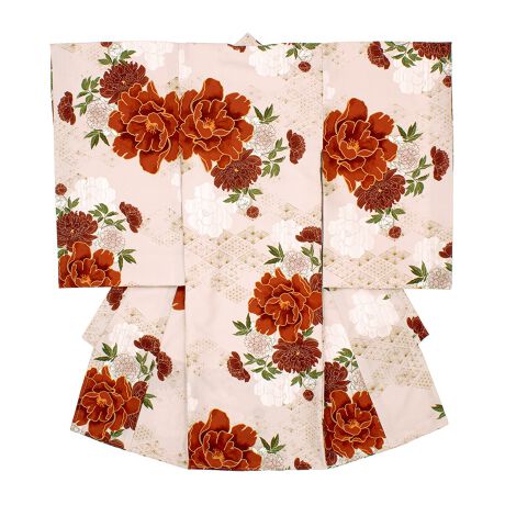 ※着物の柄部分は大きな生地を使用して作られておりますので、色や柄の出方、模様の配置等が画像と異なる場合がございます。