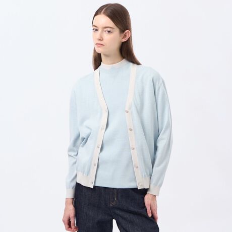 配色のトリミングラインがアクセントのVネックカーディガンです。