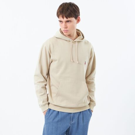 左胸にBEARのワンポイントワッペンを付けたスウェットプルオーバーパーカーです。普段使いのコーディネートに合わせ易いプレーンなデザインにしています。腰ポケットのカンガルーポケットや丈夫でボリューム感のあるフード二重仕様などオーセンティックな仕様にしています。