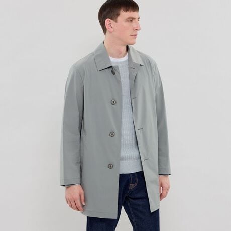 2020年春夏シーズンにデビューし、好評を博した「フェザーテックパック」シリーズ。ライトウェイトな着心地ではっ水、伸縮性といった機能を備えています。また、2026年から背裏のバギーポケットに本体を収納できるパッカブル仕様にリニューアル。収納すると片手に収まるほど小さくなります。ブランドを代表する「DUNKELD ML(ダンケルド ML)」の後継モデルとして誕生した、「DUNFORD(ダンフォード)」のショートレングスモデルです。自然にフィットした裾に向かって広がるAラインシルエットと飽きのこないシンプルなデザインはそのままに、ボタンスルーにすることで、より軽快でカジュアルに進化させたモデル。ぬけ感ときちんと感を併せ持ったどんな装いにもマッチングする万能コートです。