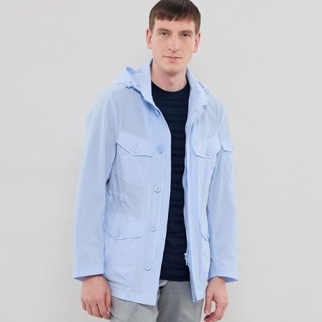 2020年春夏シーズンにデビューし、好評を博した「フェザーテックパック」シリーズ。ライトウェイトな着心地ではっ水、伸縮性といった機能を備えています。また、2026年から背裏のバギーポケットに本体を収納できるパッカブル仕様にリニューアル。収納すると片手に収まるほど小さくなります。英国陸軍のミリタリーアウターをモチーフとした人気モデル「BERWICK(バーウィック)」で、コートの様にジャケットの上から羽織ったり、一枚でブルゾンとして着用できる汎用性の高いアウターウェア―です。フードは取り外し可能で、スタンド衿のアウターとしてもご着用頂けます。