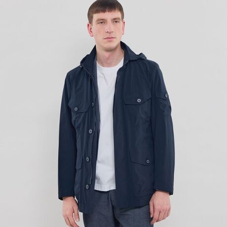 2020年春夏シーズンにデビューし、好評を博した「フェザーテックパック」シリーズ。ライトウェイトな着心地ではっ水、伸縮性といった機能を備えています。また、2026年から背裏のバギーポケットに本体を収納できるパッカブル仕様にリニューアル。収納すると片手に収まるほど小さくなります。英国陸軍のミリタリーアウターをモチーフとした人気モデル「BERWICK(バーウィック)」で、コートの様にジャケットの上から羽織ったり、一枚でブルゾンとして着用できる汎用性の高いアウターウェア―です。フードは取り外し可能で、スタンド衿のアウターとしてもご着用頂けます。