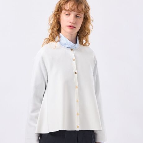 シンプルながらも着映えする、ミラノリブのニットジャケット。