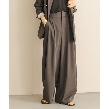 2タックでややメンズライクなデザインをフローツイル素材特有の軽く落ち感のある生地に落とし込んだことで、綺麗なドレープを生みワイドパンツに女性らしさを融合させています。