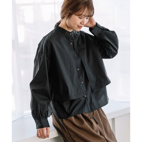 ふんわりとしたギャザースリーブに、ベスト風のレイヤーが重なる立体的なデザインのシャツブラウス。ベスト部分の紐を軽く絞って気分やスタイルに合わせてフォルムの変化を楽しめます。羽織としても着用いただけます。