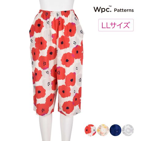人気テキスタイルデザインブランドWpc.Patterns(ダブリューピーシーパターンズ)の華やかなデザインと、快適な着心地を両立させたステテコアイテムです。生地には、とろみのある肌触りが特徴のレーヨン100%の素材を使用しており、さらに肌に触れた瞬間にひんやりと感じる接触冷感機能も備わっているため、暑い季節でもさらりと涼しい快適な着心地が持続します。丈は、足首を出し、足さばきが良い7分丈で、ジメジメした日にもおススメです。ラクチンな着心地なのでお家でのリラックスタイムやちょっとしたご近所への外出にも最適です。気分が上がる4種類の柄をご用意しています。鮮やかな大輪の花が印象的なピオニ柄、優しいイエローを基調としたポルク柄、淡いトーンで上品なペールブロッサム柄、深いネイビーに水彩画のような花をあしらったシックな水彩フラワー柄です。