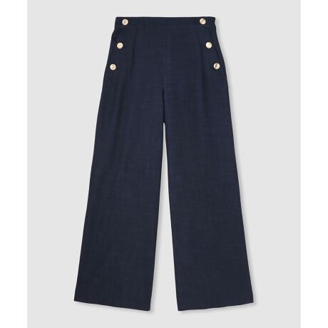 デニム調ながらもカジュアルになりすぎず、ワイド幅は太すぎないバランスに仕上げているので、きれいめな印象で着用できます。