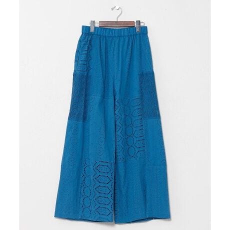 [型番:IDS-6114-2026]3種の刺しゅう生地とレース、ドビー織をパッチワークしたストレートパンツ。前裾スリット入りで抜け感あり。色柄豊富でコーデの主役にぴったりな一本。