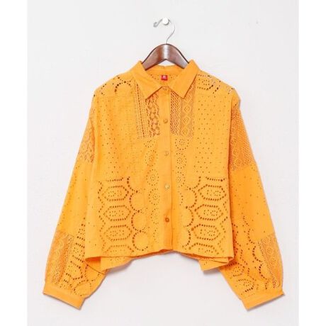 3種の刺しゅう・レース・ドビー織を使用した贅沢なパッチワークシャツ。短丈デザインで通気性も抜群。鮮やかなカラーが映える、唯一無二の存在感ある一枚。