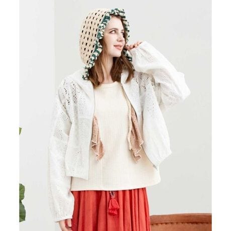 [型番:IDS-6113-2026]刺しゅうとレースの豪華パッチワークが目を惹くパーカーカーデ。ジップ開きで着脱も楽ちん。軽く羽織るだけで主役になれる存在感のある一枚。