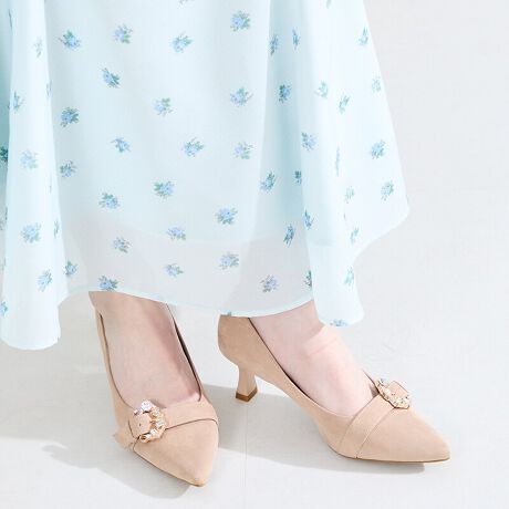 ビジューバックルがコーディネートに華やぎプラスしてくれるパンプス。