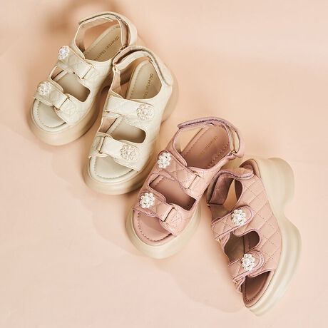【26春夏新作】パール×キルティング厚底サンダル/61209