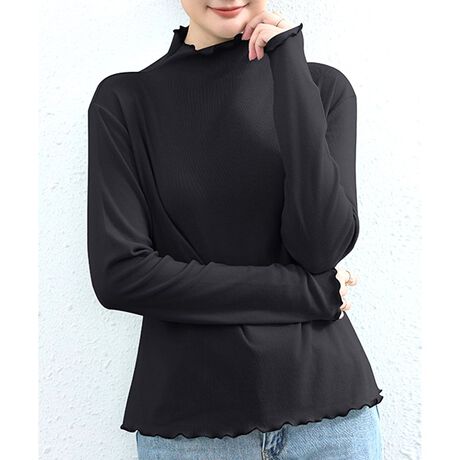 季節の変わり目には一枚で、寒い時期にはインナーとしても使いやすいのが魅力です。
