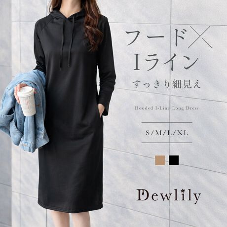 フード付きIラインロングワンピース