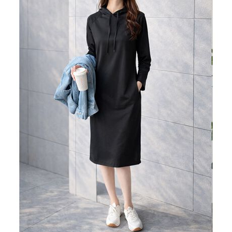 フード付きIラインロングワンピース