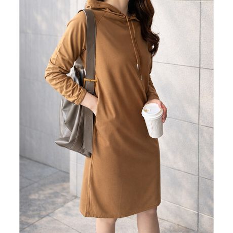フード付きIラインロングワンピース