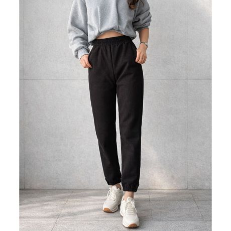 コーデュロイ風の素材が、やさしい表情をプラスする一本です。