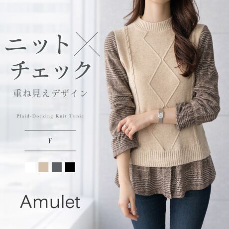 マルイウェブチャネル   /   アミュレット   /   トップス   /   チュニック   /   チェック柄ドッキングニットチュニック