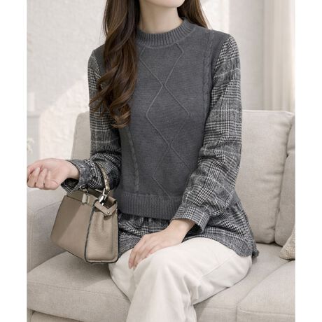 ニットとチェック柄を組み合わせた、表情豊かなドッキングデザインです。