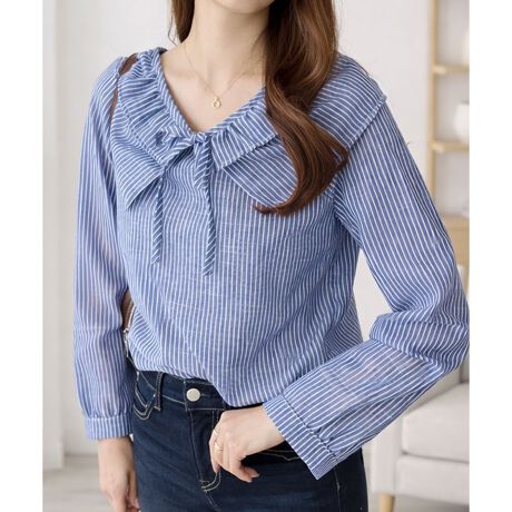 ビッグカラーリボンストライプブラウス
