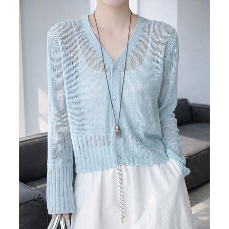 キャミソールやタンクトップの上に重ねて、透け感を楽しむ着こなしがおすすめ。