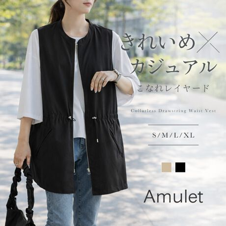ノーカラーウエストドロストベスト