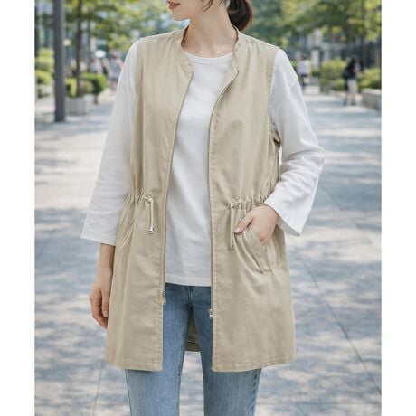 ノーカラーウエストドロストベスト