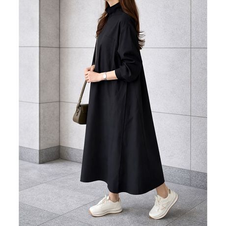 体のラインを拾いにくい、ゆったりとしたフレアシルエットが魅力。