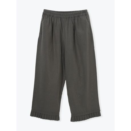 [型番:26410706575]裾のプリーツデザインがさりげないアクセントになるパンツ。ウエストの内側にはドローコードを施しており、お好みのサイズに調整できます。コットンリネンを使用したやさしい肌触りがポイント。カットソーやシャツと合わせたコーディネートがおすすめです。Hare no hi/ハレノヒ