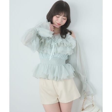 今季らしい着こなしにぴったりな、シアーフリルディテールを取り入れたブラウス。