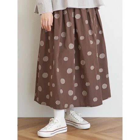 [型番:26410706608]表面感のあるドットジャガードが可愛らしい印象を与えるスカート。裾に向かってふんわりと広がるフレアシルエットになっており、フェミニンなムードをプラスします。ゴム仕様のウエストがラクな着心地を演出。休日のお出かけやタウンユースなど、様々なシーンでお使いいただけるアイテムです。Hare no hi/ハレノヒ