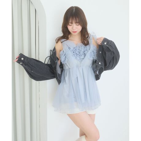 存在感のあるフリルデザインが魅力の、透明感のあるチュール素材を贅沢に使用したビスチェ。