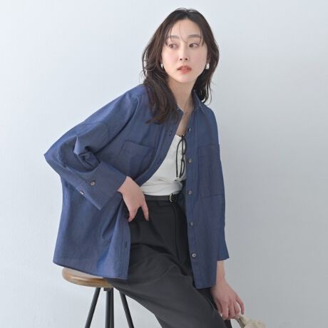 程よいドルマンシルエットのデニムシャツ。