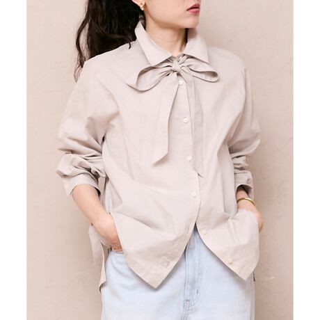 取り外しのできるボウタイリボンで2WAYの着こなしが楽しめるブラウス