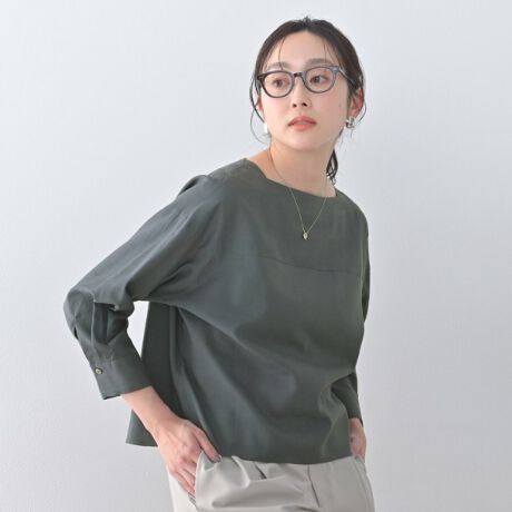 涼し気でナチュラルな風合いのヘンプレーヨン素材のブラウス。