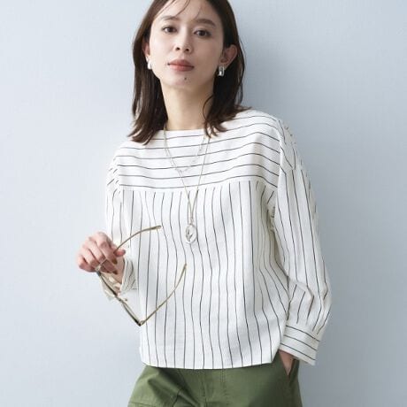 程よい6分袖は、カフスを一折し、かるくプッシュアップしてきていただくと、よりこなれ感ある着こなしをお楽しみいただけます。