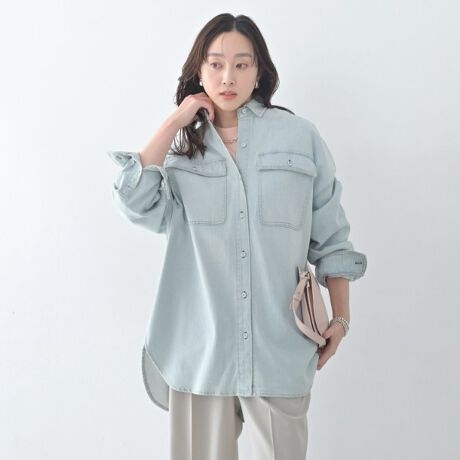 スタイリングはチュニックのような感覚で裾をアウトにしてボトムを合わせるもよし、前裾をボトムにタックインして着用するもよし、フロントを全開にして羽織として着用してもよし、様々な着こなしが可能です。