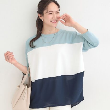 異なる色の組み合わせが新鮮で、一枚でコーディネートの主役になるアイテムです。